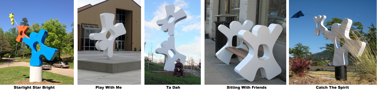 The original Happy Human sculpture ( Ta-Da ) was modeled after my amazing play with my daughter. Her big smiles and laughter as I tossed her into the air combine with the excitement of free falling, only to land back into loving hands was a magical experience. I wanted to design a sculpture that could capture all that as well as ignite memories, thoughts, imaginations and leave smiles on the faces of all that view them regardless of the viewers age. I wanted a simple work that didn't need a long philosophical statement to be understood but rather a work of art my young daughter ( at the time ) could look at understand and smile at. The result the Happy Human project, eight public works and growing, countless ornaments we sell every year with all the profit going to our local food banks, and a product line coming soon. I hope you are all Happy Humans!
